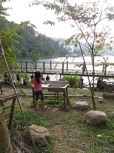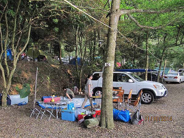 (上圖)因為雙十連假的關係,很多營區都客滿了,所以我們只訂到A3區18號的營位,雖然不是第一排面湖營位,但沒想到也不錯。
