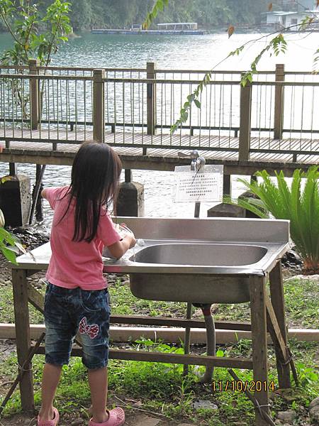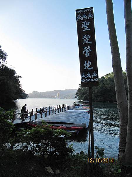 有兩個方法可以抵達聖愛營區:一、搭船(來回共100元,但要滿15人才出船。)。二、由日月潭環潭公路9.8公里處有一個聖愛信箱(上圖)旁的小路,一路向下走到潭底,就到了。我沒有仔細算,但粗估應該啦~有1000個階梯吧。可當健行,我孕婦一枚,也來回走了一趟呢。小Case的啦!
