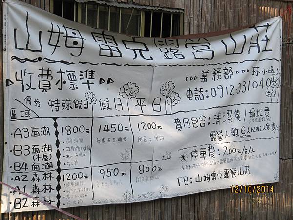 (上圖)附上收費一欄表,我們住的是$1450元(晚)。也是我住過有始以來最貴的露營區哦。