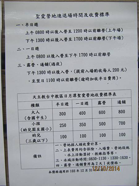 (上圖)附上收費一欄表,來個半日遊,一個人$300,划個獨木舟也不錯,穿上救生衣,教練稍微指導一下,就可以出航囉。