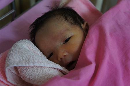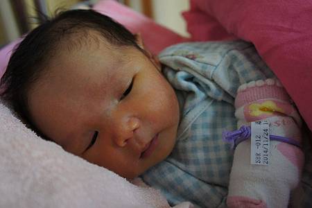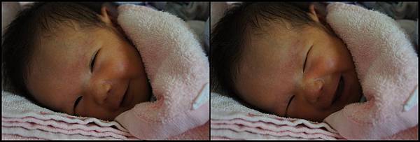 (右上圖)笑了一下,一秒後馬上又睡著了。應該是做了什麼好夢。