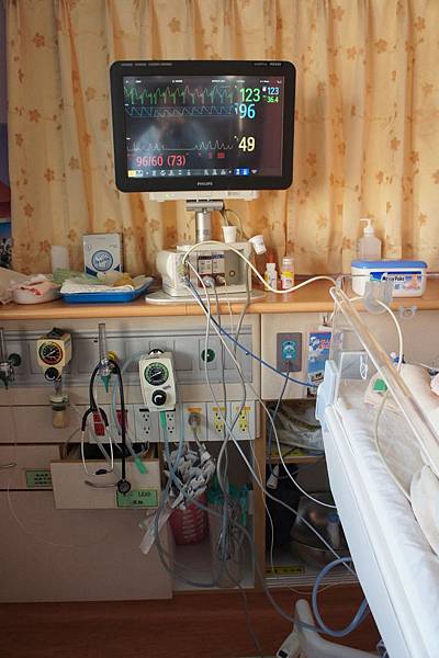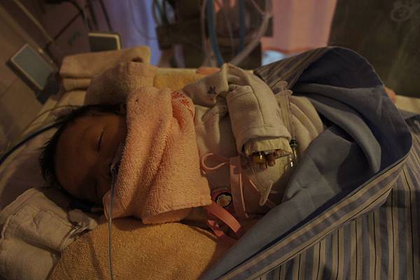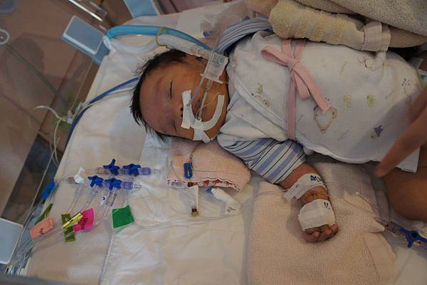 看著及安撫著一直哭的愛愛,看著數據螢幕顯示呼吸次數一直飆高、血氧量由100一直降一直降,我快要瘋了,心想,"上帝,難道一點好運都不能給我嗎?"