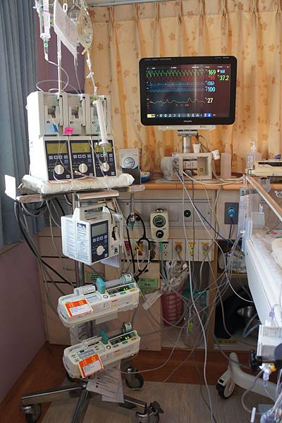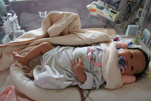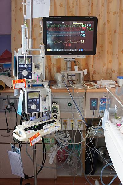 今天一早潘醫師說可轉嬰兒病房了,但因嬰兒病房客滿,而另一區雖然有位置,但是感染源,所以愛愛還是住加護病房囉。