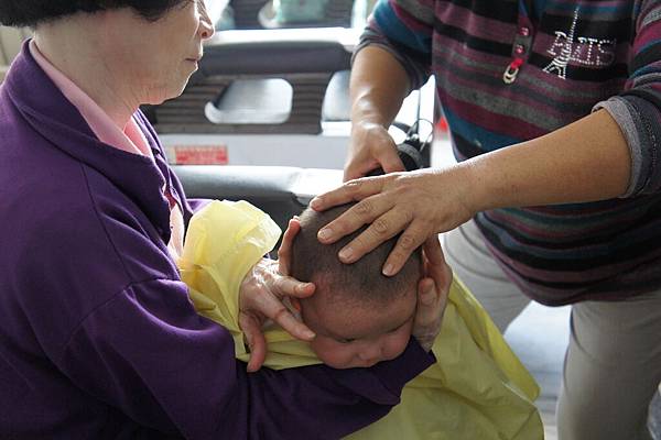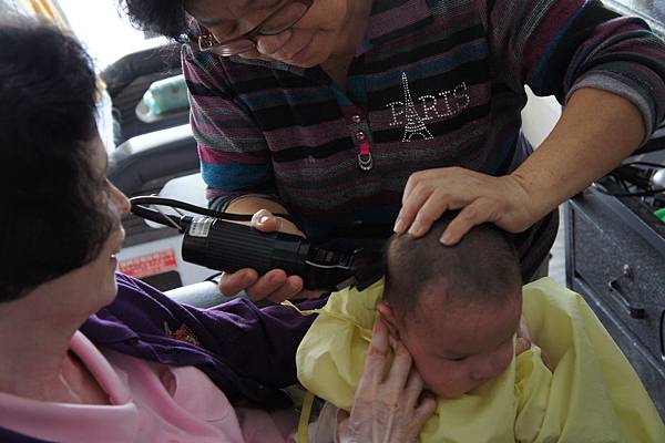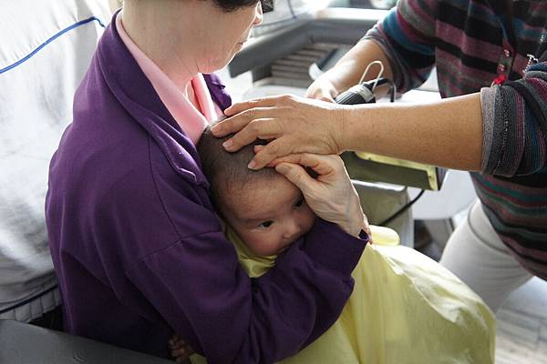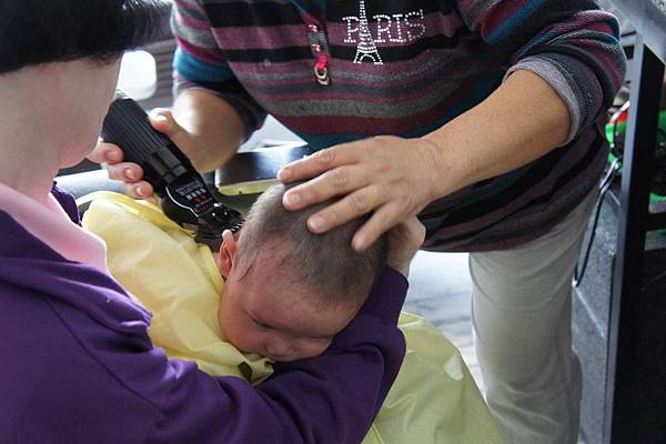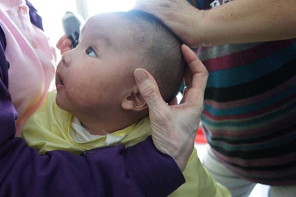 (上圖)愛愛的第一次剃頭毛,一定要紀錄的啦~。愛愛還在尋找那個咦~咦~咦~的聲音,根本還搞不清楚狀況就這樣理完了。哈,真好應付。