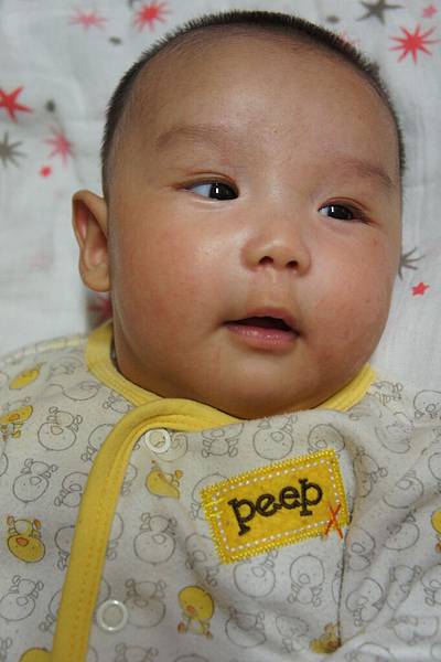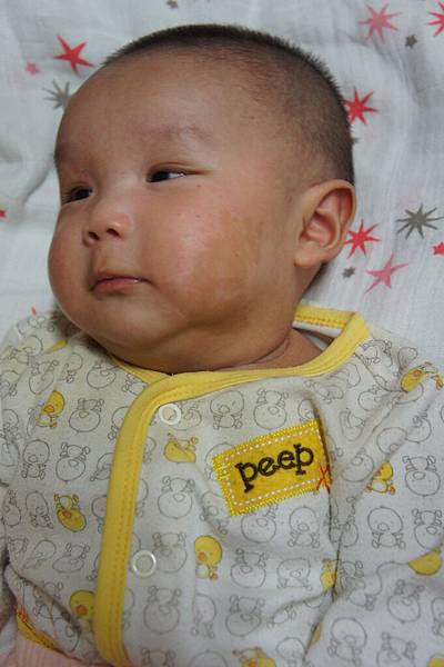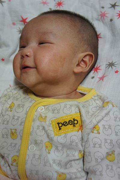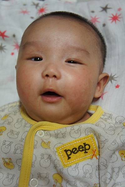 (上圖)這是牛牛剛好滿五個月的照片,牛牛滿月有剃胎毛,但五個月時仍不長頭髮,最慘的是四歲之前頭髮之短及稀少,即使是現在快滿六歲了,除了婆婆持續有在修剪瀏海外,其餘仍未剪過。