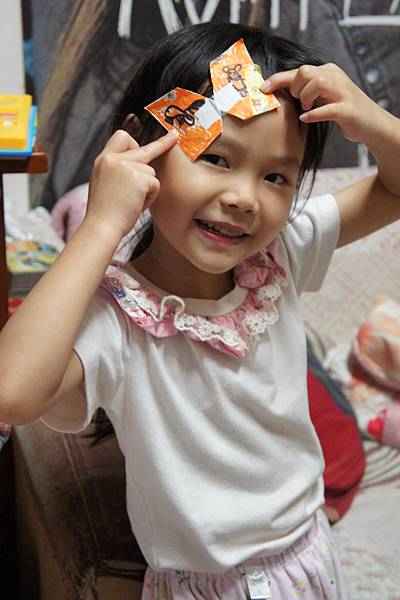 Nicole:橘色這一面比較好看,蝴蝶結要放邊邊比較好看啦~...。