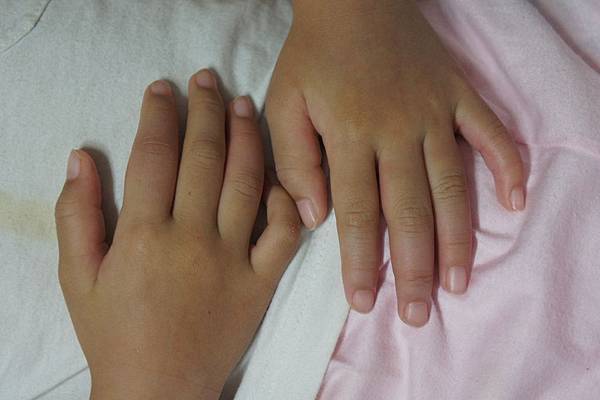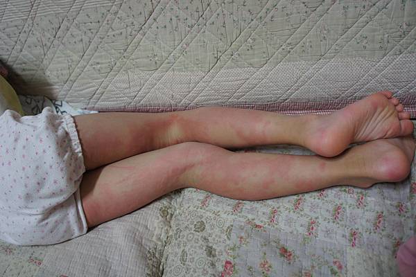 (上圖)手指及腳指縫也是紅的,你就看著她即使擦了藥,還一直搓、搓、搓...。