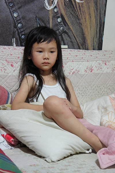 (上圖)真是讓人筋疲力盡,半夜仍要持續餵藥、全身擦藥、不時要冰敷,一早起來還39.1度,內心都快要抓狂了還不能表現出來。