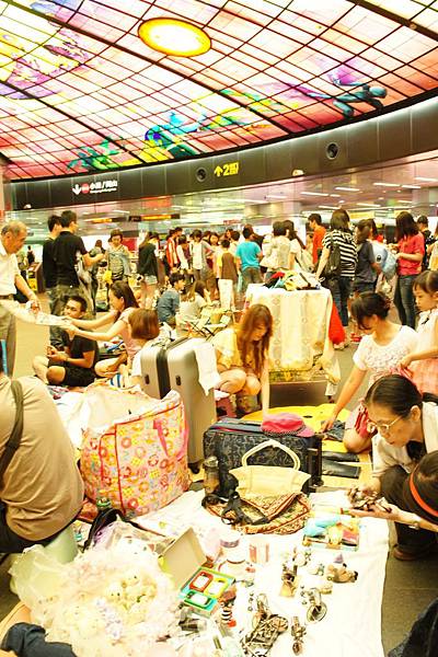 高雄捷運紅線及橘色交叉口美麗島站R10 (O5) "光之穹頂",這星期日及下星期日舉辦跳蚤市場,舉辦單位號稱各有1200個攤位,但實際察訪,好像沒有耶~。