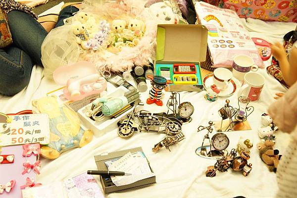 逛跳蚤市場真的還蠻好玩的,有好多是走過忘了拍照的,像歐洲國家的飲料空瓶,老闆說是可以拿回家插花......之類的;還有一對夫妻,買了兩大袋的布娃娃,我直覺是要送孤兒院做公益的。