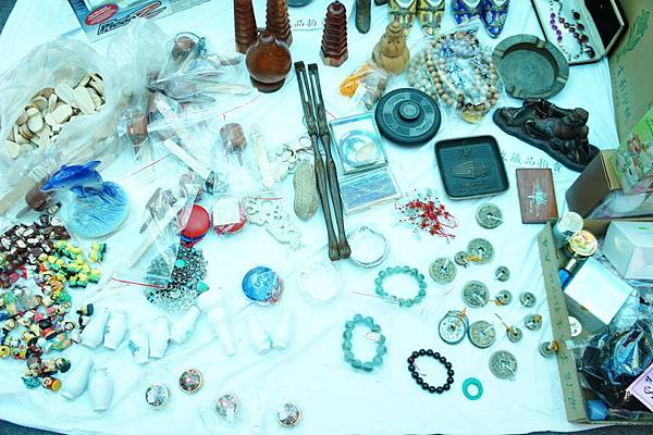 (上圖、下圖)這一攤的伯伯,賣早期古物也賣水鑽???真的很"跳蚤"!