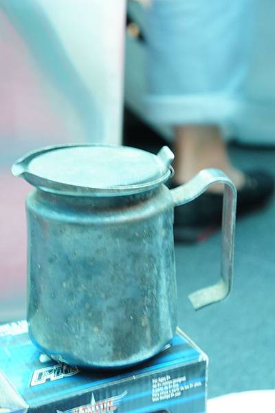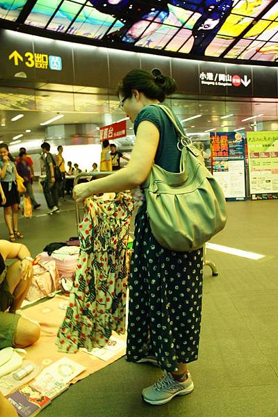 (上圖)哇~看到這一攤,一個綠色的水壺($150),下手~買了。