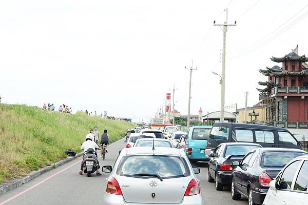 (上圖)整條高美溼地旁的道路也是自行車道,但大車、小車搶道嚴重。