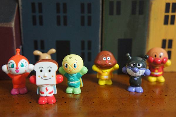 (上圖及下圖)扭蛋的麵包超人食玩,高約3公分,表情及服裝都不一樣哦。