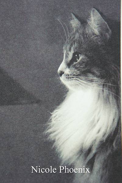 這張(15* 10c m)貓咪躺在冰箱上面伸懶腰的明信片,是2005年的更早之前在紀伊國屋書局買的。牠臉上的紋路,像不像是一隻穿了皮靴的貓,戴上了華麗的舞會面具呢~