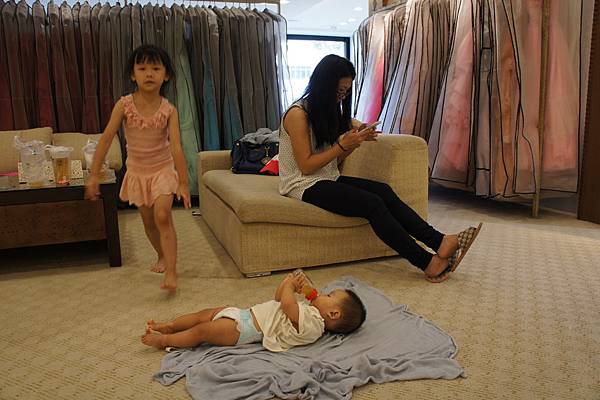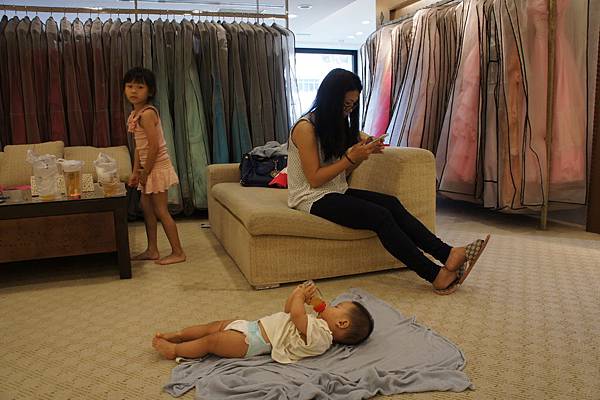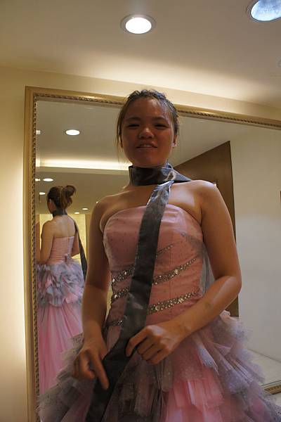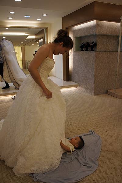 (上圖)又是一件想讓她穿過癮的衣服,服務小姐說,會露出三分之一的奶喔,我說"沒關係!"(就是要給她露。)