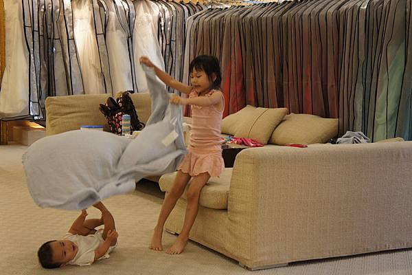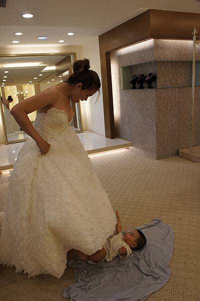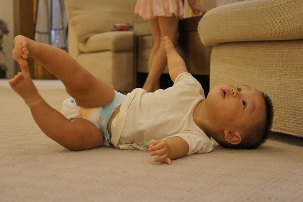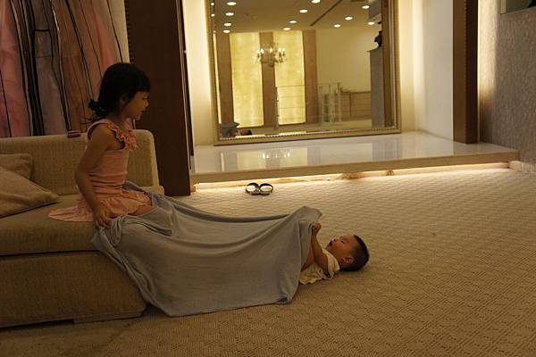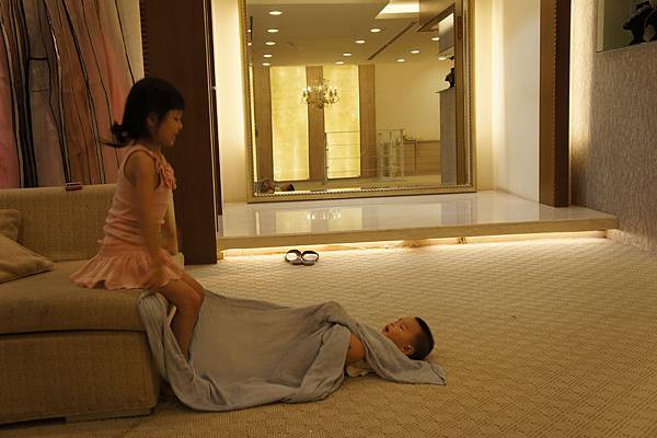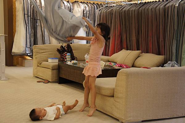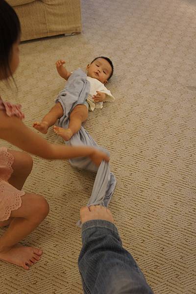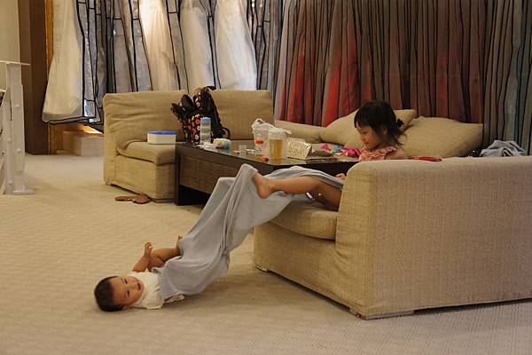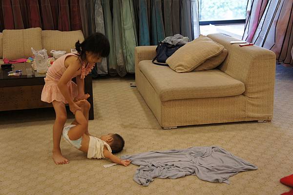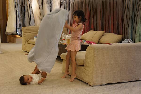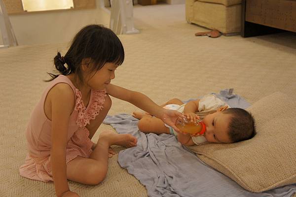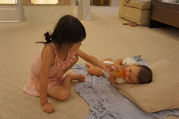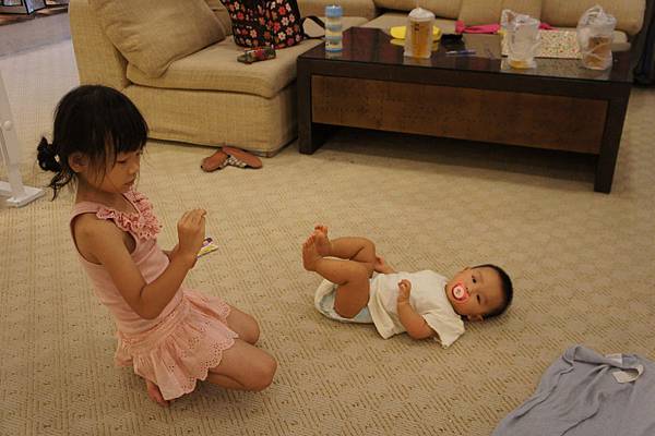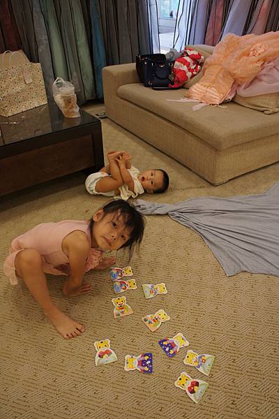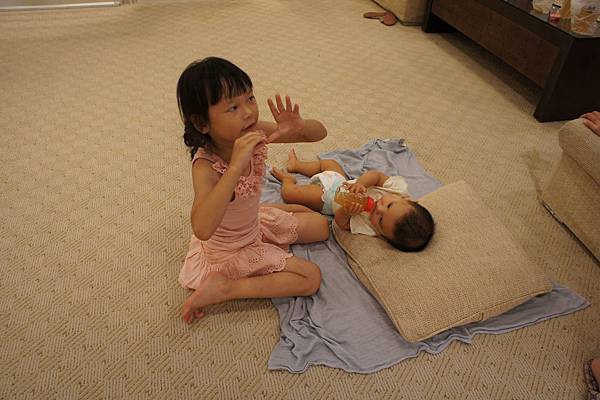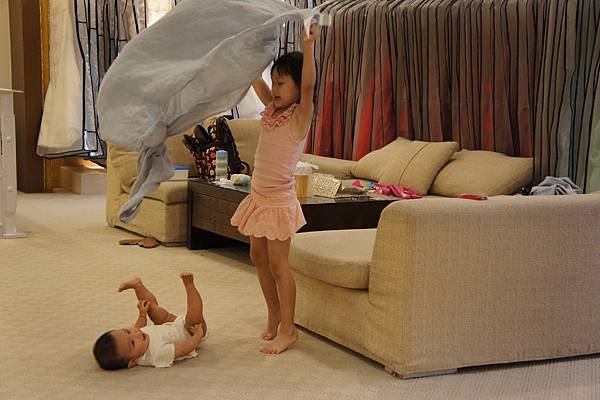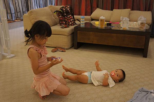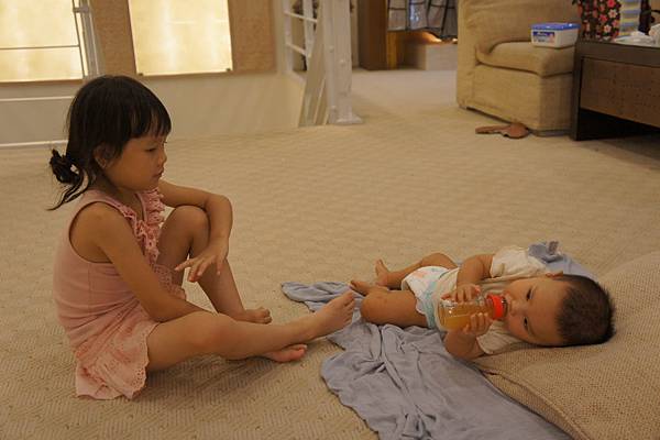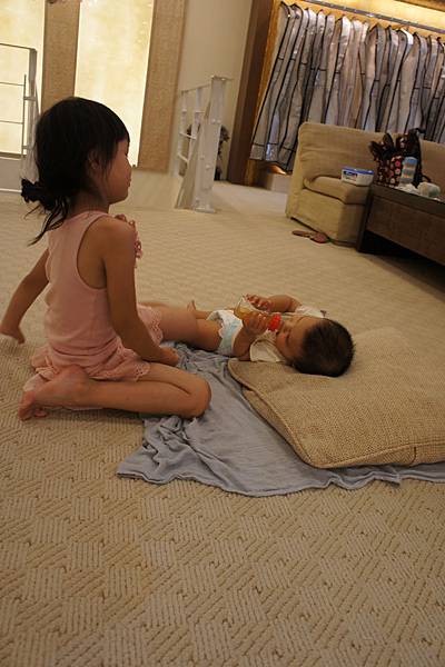 牛牛的責任就是,看顧"愛愛"不要滾到樓梯下、玩躲貓貓及撿地上的"鑽"。