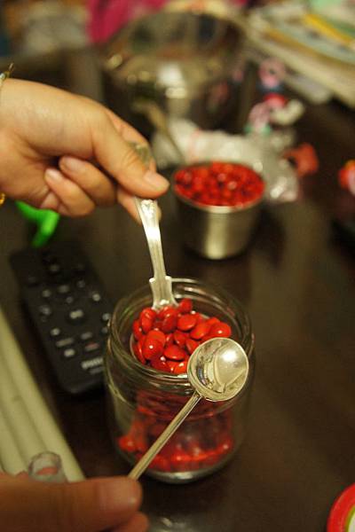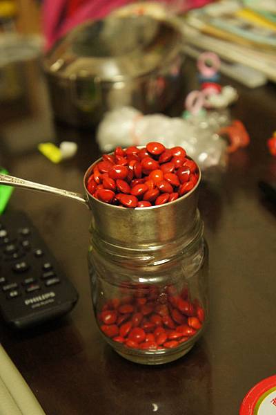 牛牛:麻~慧芸姐姐(二年級)要跟我買整瓶相思豆喔~她還問我,"這個可不可以吃?" 我說"不行",她就說"算了!"