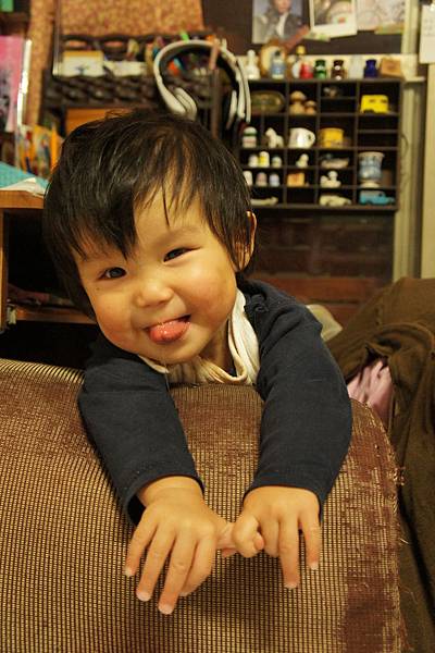 (上,下圖)"愛"一付被捉包又害羞的樣子。