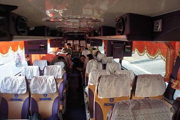 搭乘豪華氣墊式巴士,而且15個人還是坐新車喔。呵~呵~呵~