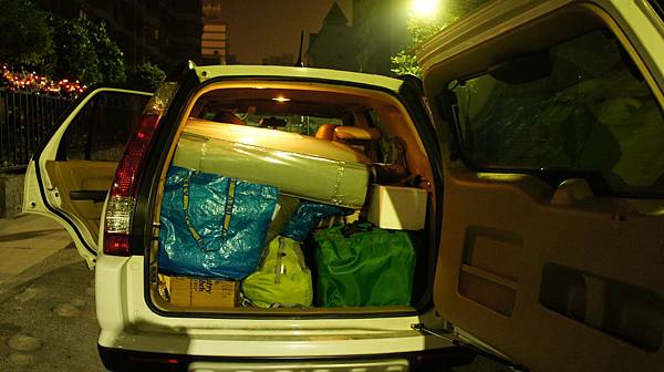 (上圖)只是住一夜而已,行李可以這麼多,很難想像如果住二夜以上,我的車可能就超乘載了。