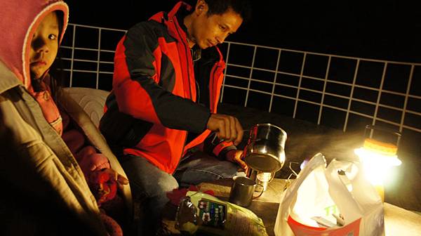 一早,空氣很好,大夥都在睡,發現頂棚區是客滿的呢。