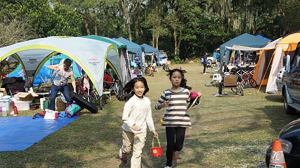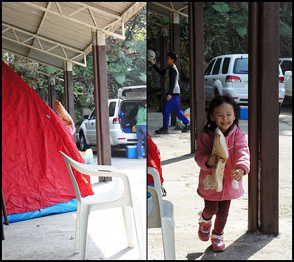 秋冬的好處是隨時可以露營,即使下雨天或寒流,亦可以撿果實。頂棚區一旁種有楓香,所以地上掉了很多楓香種子。